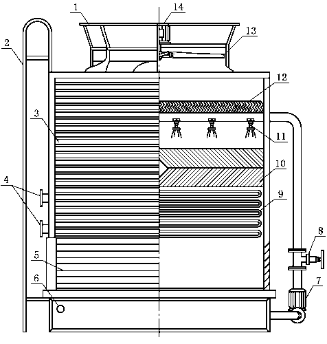 循环冷却水不与空气直接接触,通过间壁式换热器将热量传给喷淋水,由喷淋水的蒸发和空气的显 热传递,降低循环冷却水温度的装置。
