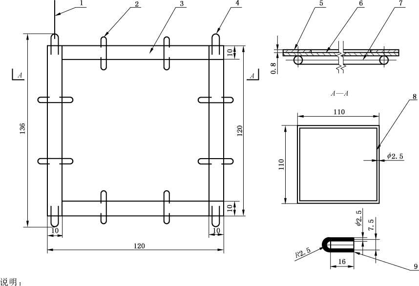 4 ---骑马钉,敢2.5 mm,与侧板框焊;