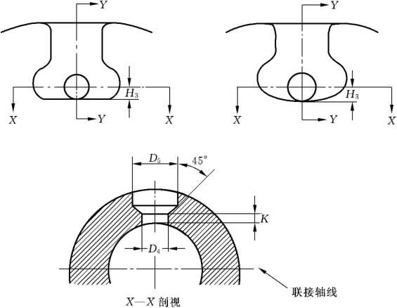 帽窝内腔的主要尺寸和配用锁紧销的最小厚度应符合第io章规定。