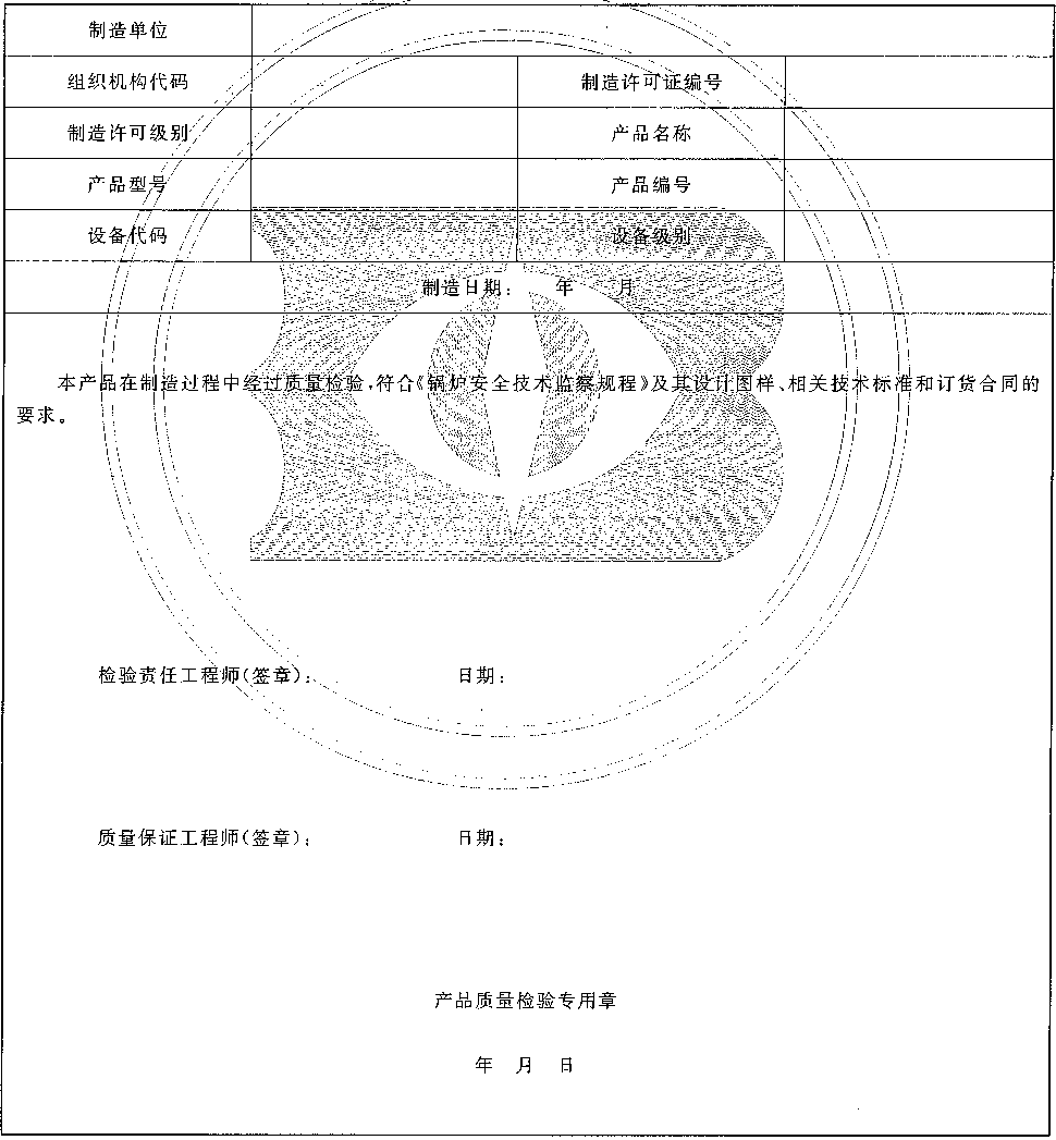 表A.1锅炉产品合格证