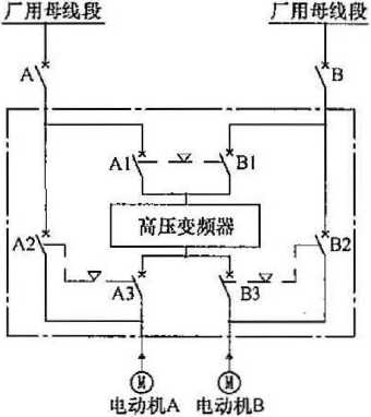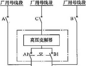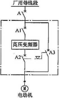 1 “连续运行无备用”的工艺负载主要指引风机、送风机、一 次风机或电动给水泵组等。一般此类负载为50%容量、双套配 置,正常连续运行。采用“一拖一”方式,正常运行时电动机变频运 行;当变频器故障或检修时,变頻器退出运行,电动机切换至工频 旁路运行。变频调速系统中与变频器成套的开关一般与其电源输 入开关选型一致。