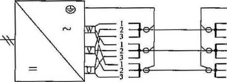 连接大容量变频器和电动机时因电流很大需要多根电缆并 联,此时釆用如图3所示的对称布线方式。