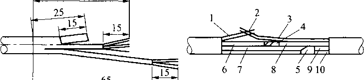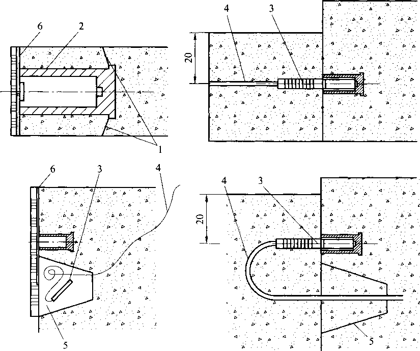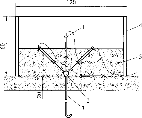 新型应变计结构内包含一个钢筋架,钢筋直径只有6mm,相 对整组混凝土,其“配筋率”极小,不会影响其素混凝土的特性。 这个支架可用来安装单向、两向、三向、四向、五向、七向和九 向应变计组。如果改变钢筋架接头的结构,使钢筋自由可以伸缩, 将更为完善,需要进一步试验研究。新型应变计结构巳在西南地 区多个水电站工程中使用,取得了较好的效果。