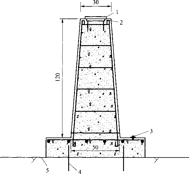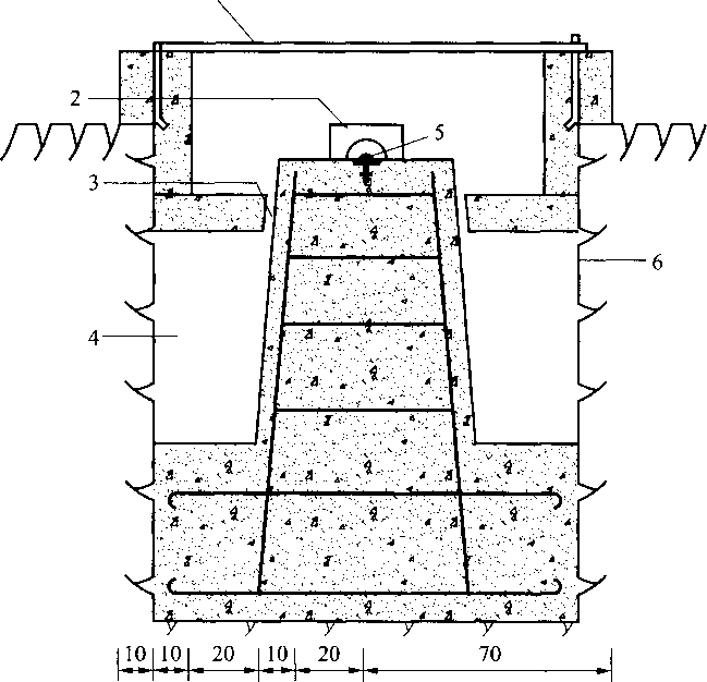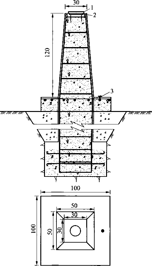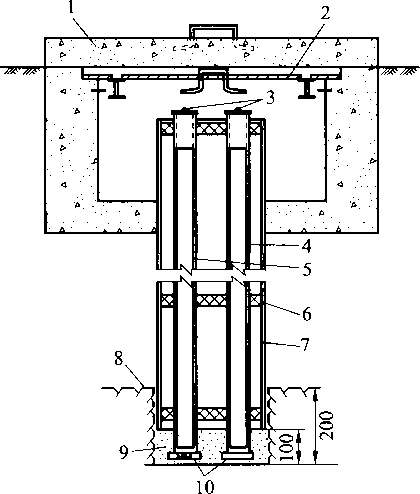 3为提高抗外压能力,外套筒采用双层套筒;为增加筒内混 凝土的变形空间,内筒内侧设置40mm厚的泡沫塑料内胆,再涂 IOmln的沥青,泡沫塑料内胆加沥青涂层可用50mm的橡胶替换。