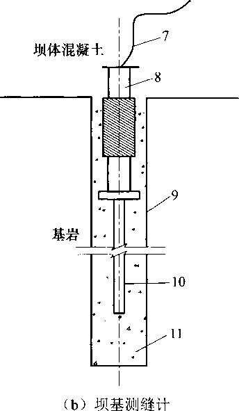 3) 混凝土内测缝计:混凝土浇筑初期的缝隙开合度主要 取决于温度,温度最高时缝隙最小,可取为计算基准 值,以避免后期缝隙开合度出现负值。