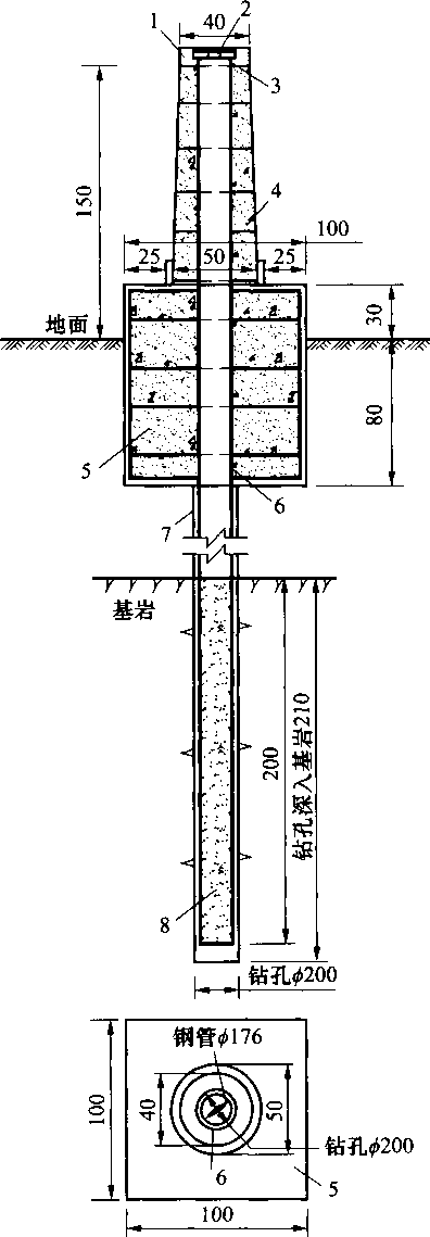 2仪器上部混凝土厚度为25Omm,以使应变计脱离应力影 响区。