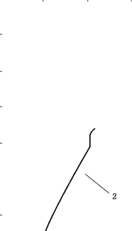 B.4.1图B.2是E-IogI曲线的一个例子。把套管/电解质的电位和外加电流画到半对数坐标上。需要 的电流通常取交点处电流(图B.2中1).或者取TafCl区第一个点的电流(图B.2中2)0