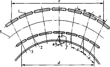 7.6.1本条指出正多边形传动框架安装,可每间隔7个台车为一 组组装,检查弧弦长度(c、d)是适宜的,也可根据实际台车总数,适 当分组进行。 ,
