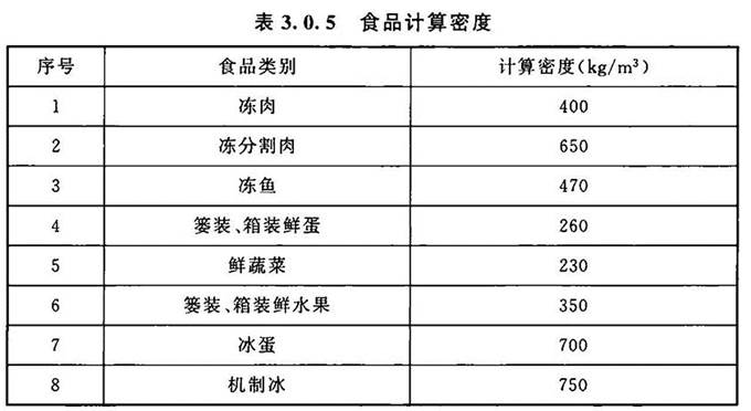 3.0.5 食品计算密度应按实际密度采用,并不应小于表3.0.5的规定。