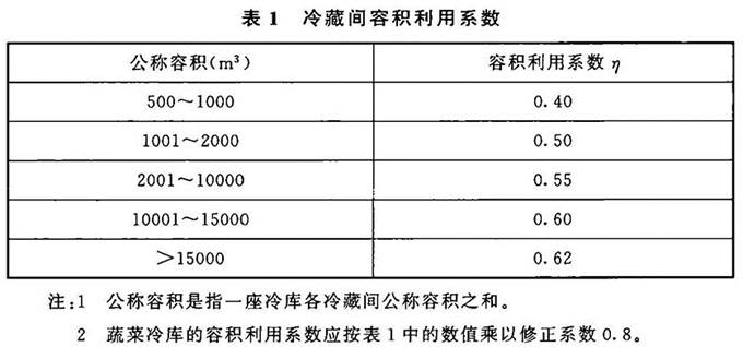 3.0.2 对于按直接堆码冷藏物冷库的计算容量可按下式计算: