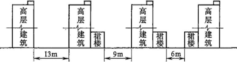 不同防火分区通向下沉式广场安全出口最近边缘之间的水平距离不应小13 m,广场内疏散区域的净面积不应小于 169m2o