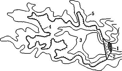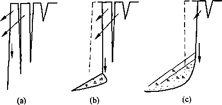 (1) 结构面的几何形态。结构面按形态可分为平直型、波状起伏型和曲折型3种。 平直型包括一般层理、片理、原生节理和剪切破裂面;波状起伏型具波痕的层理、轻度揉 曲的片理、沿走向和倾向呈舒缓波状的压性、压扭性结构面;曲折型张性、张扭性结构 面,具交错层理和龟裂纹的层面、缝合线等。