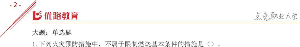 解析:燃烧基本条件:可燃物、助燃物和引火源 故D不属于限制燃烧条件的措施