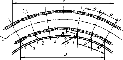 a.同侧面的上下两托辐轴向中心线应同心.挂设钢丝基 准线測量与托辐侧面间距若(口 -门、门-匸J不得大于ImJ
