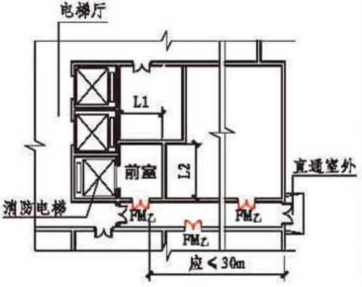 答:按《防排烟标准》规范条文,加压口设置在顶部即可,不需设置于前室门顶正上 方。