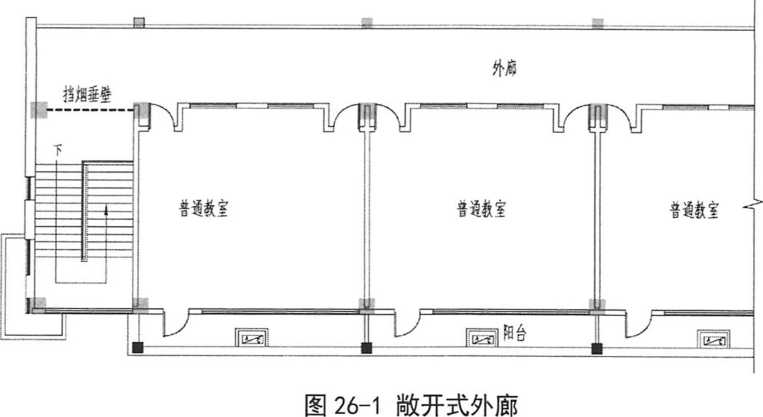 26.第4. 2.1条,设置排烟系统的场所或部位应采用挡烟垂壁、结构梁及隔墙等划分 防烟分区。但教学楼等建筑的全敞开外廊,是否还需设置防烟分区及挡烟垂壁?