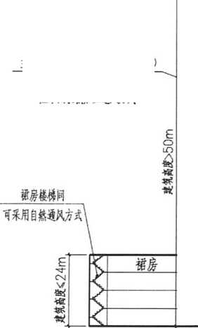 5.建筑高度大于50m的公共建筑、工业建筑和建筑高度大于IoOIn的住宅建筑,其高 度小于24m的裙楼或高度小于50m的附楼,其楼梯间、前室、合用前室是否可以自然 通风?