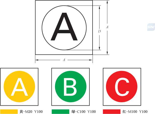 A.6.2 设备标志制图标准色:红色MlOO Y100,黑色K100,绿色ClOO Y100,黄色M20 Y100,蓝色 M50 ClOO,紫色 C5O M50。