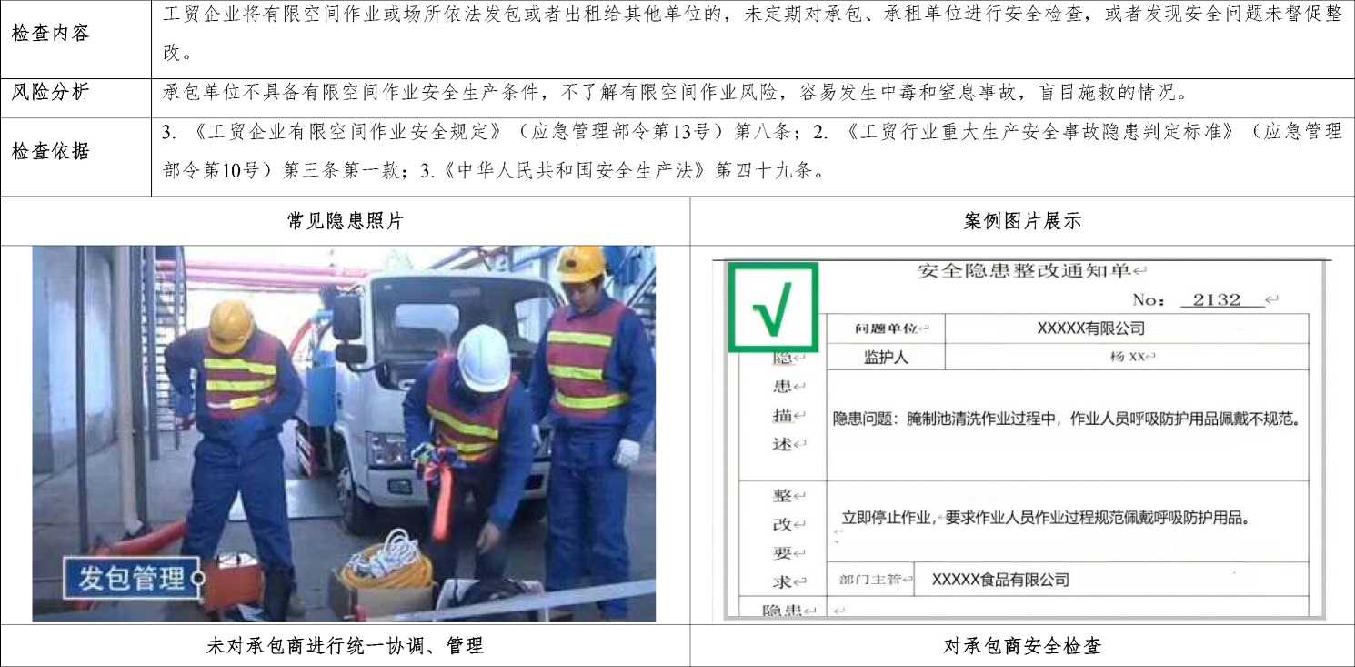 检查依据 《工贸企业有限空间作业安全规定》(应急管理部令第13号)第十五条。