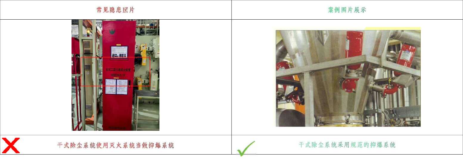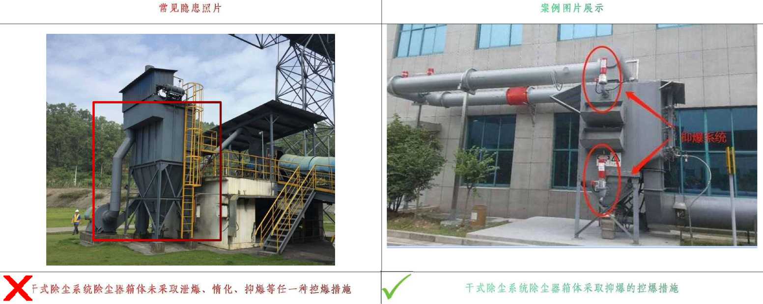 检查内容 干式除尘系统除尘器箱体是否采取泄爆、惰化、抑爆等任一种控爆措施。