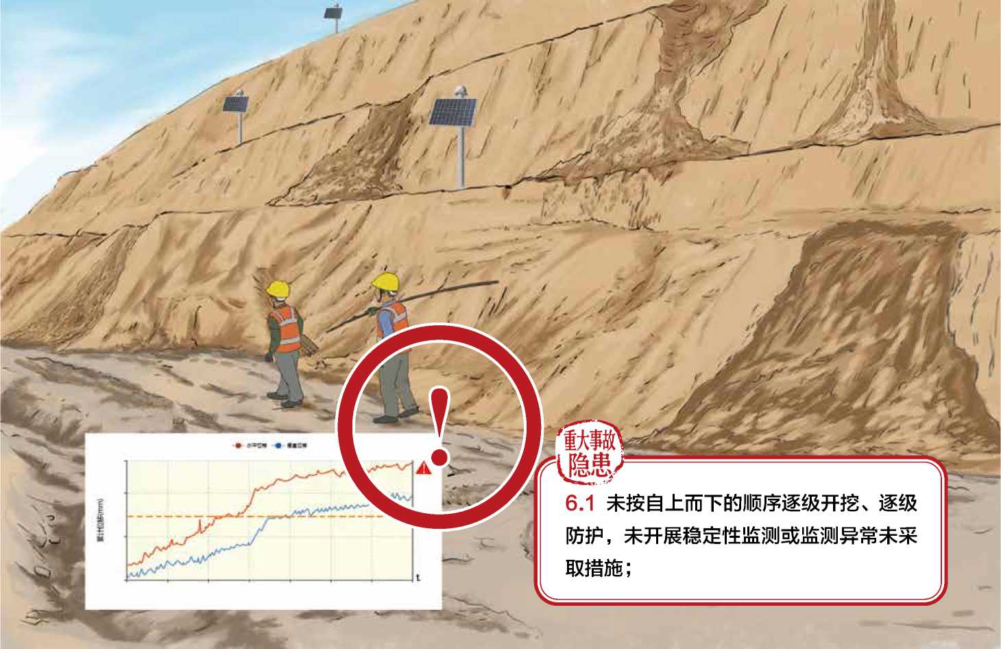 (一)高边坡开挖方法未按专项施工方案或技术规范实施, 未开展稳定性监测或监测异常未采取措施;