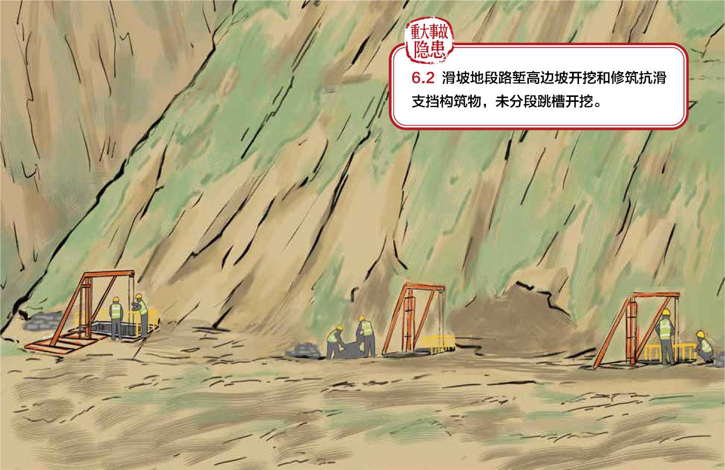 第六条 高边坡工程施工存在以下情形之一的,应判定为重 大事故隐患: