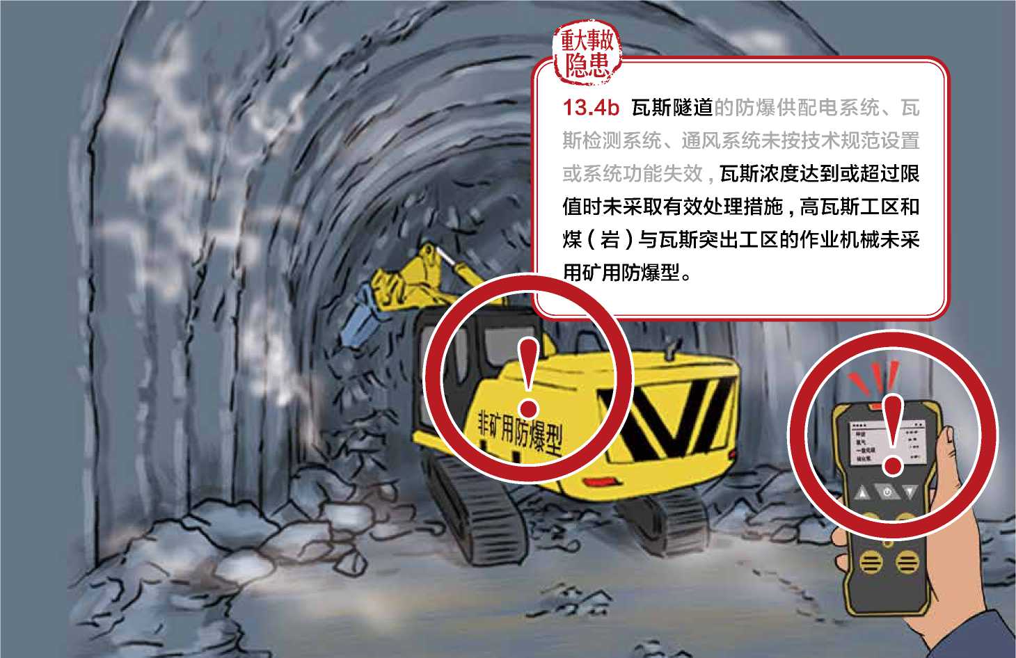时未采取有效处理措施,高瓦斯工区和煤(岩)与瓦斯突出工区 的作业机械未采用矿用防爆型。