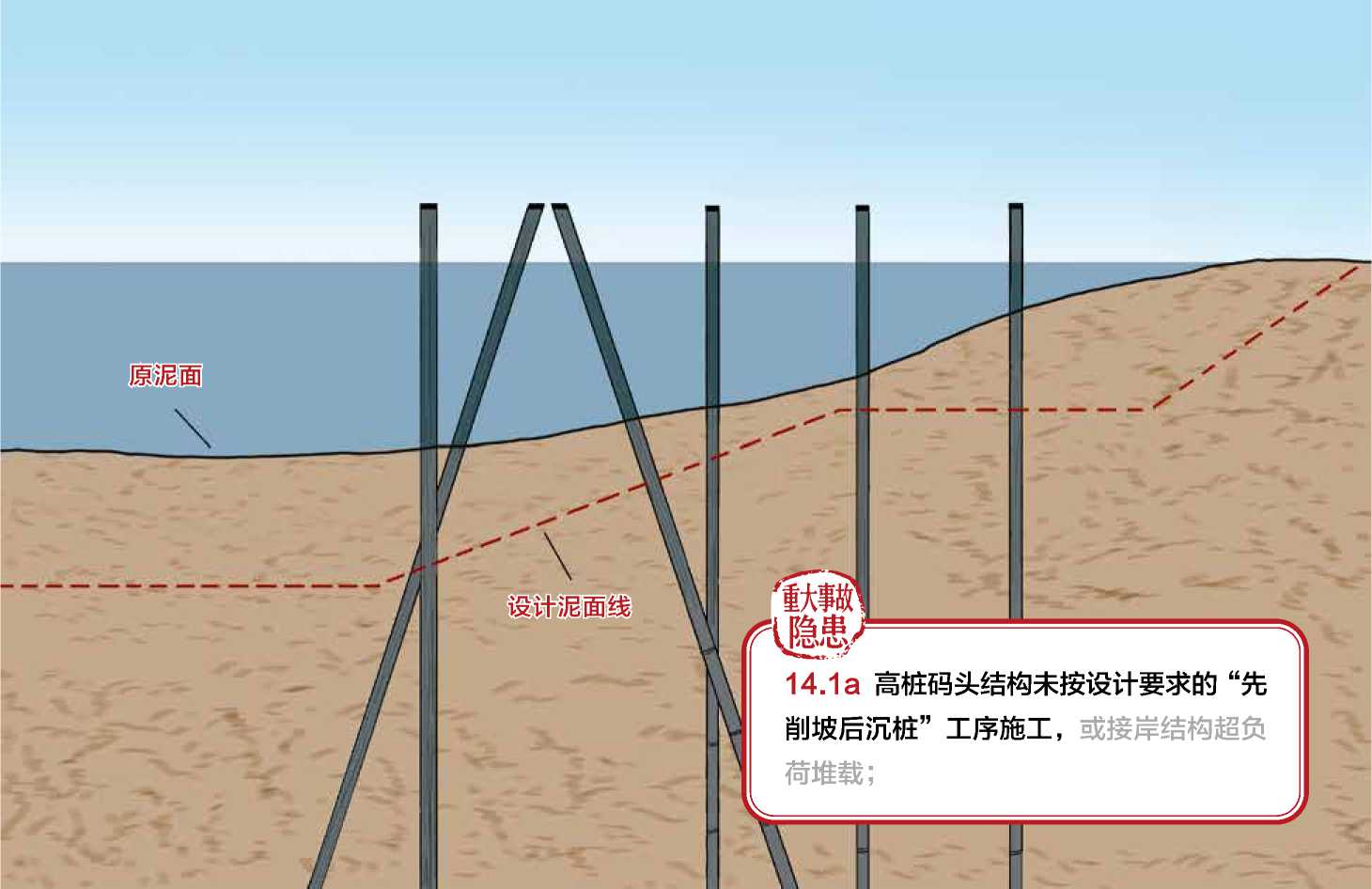 (一)高桩码头结构未按设计要求的“先削坡后沉桩”工序 施工,或接岸结构超负荷堆载;